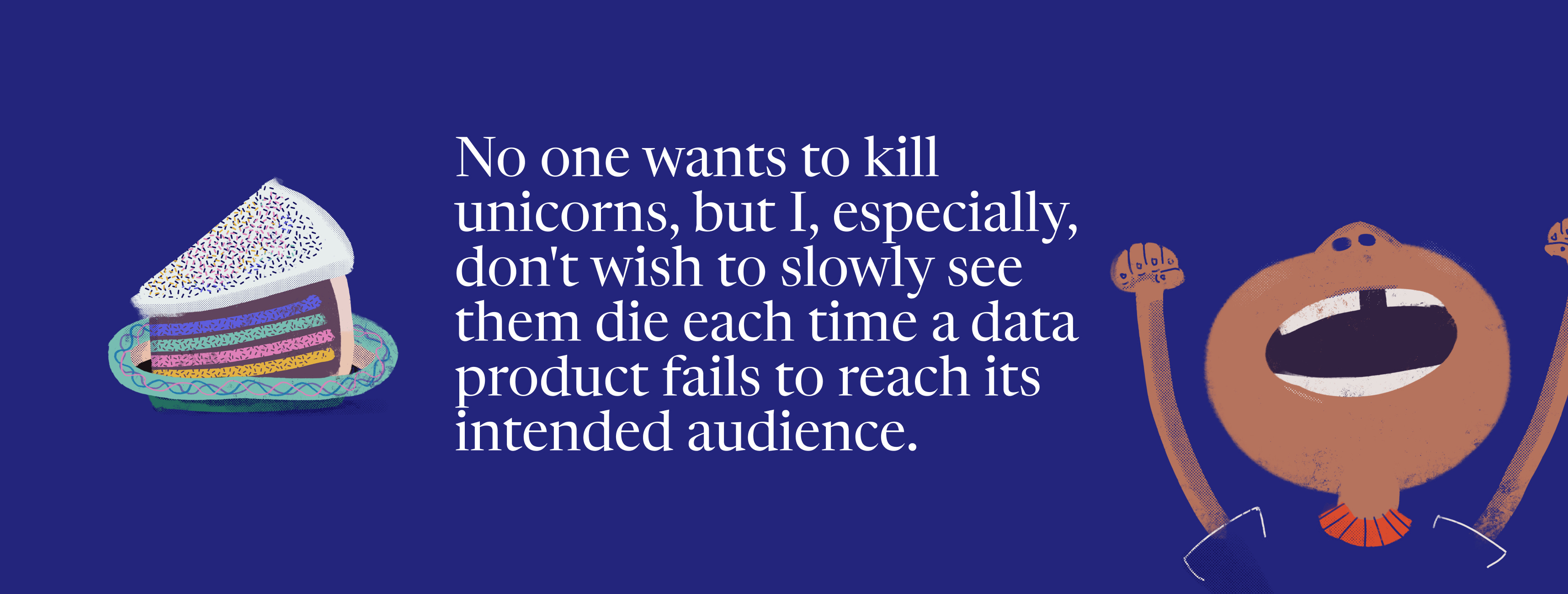 You see, there is an entire world to be explored in terms of how data can be shown, experienced, felt, understood, sensed, and just enjoyed. All of those decisions depend on the user. The final user changes everything. If you forget this, you may be murdering a unicorn, and please, no one wants that.
