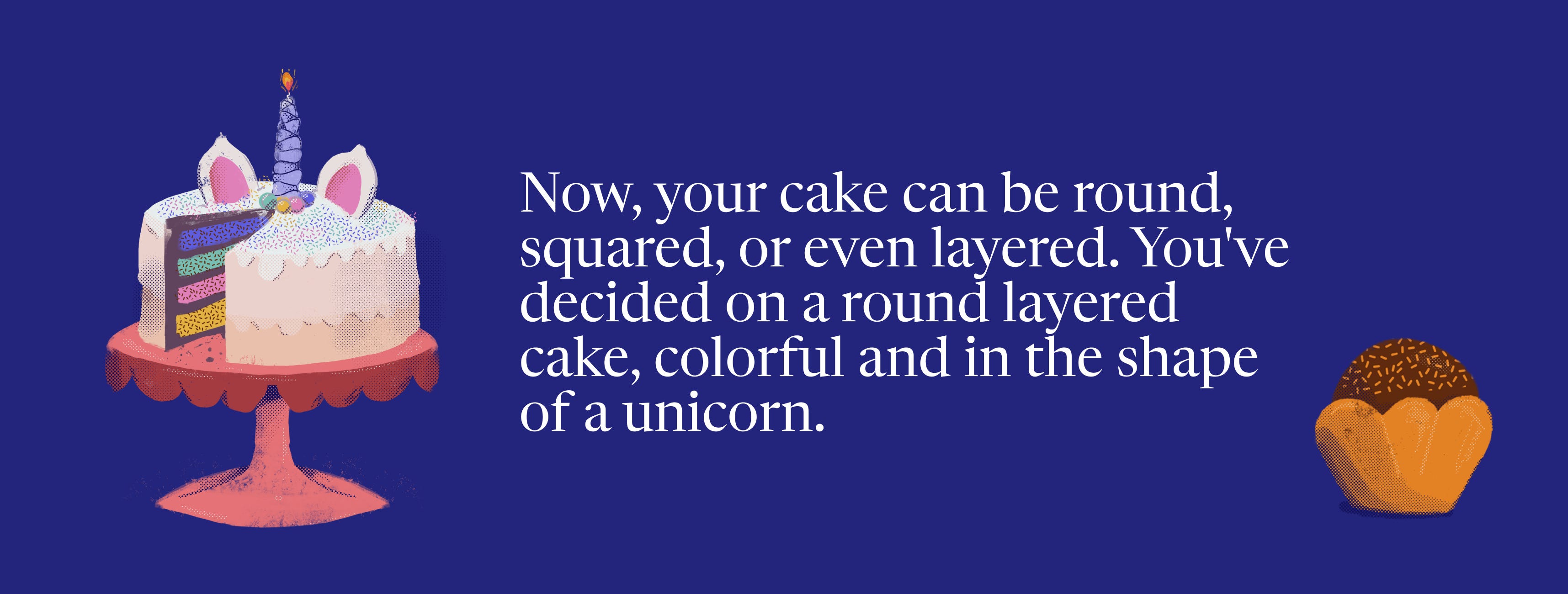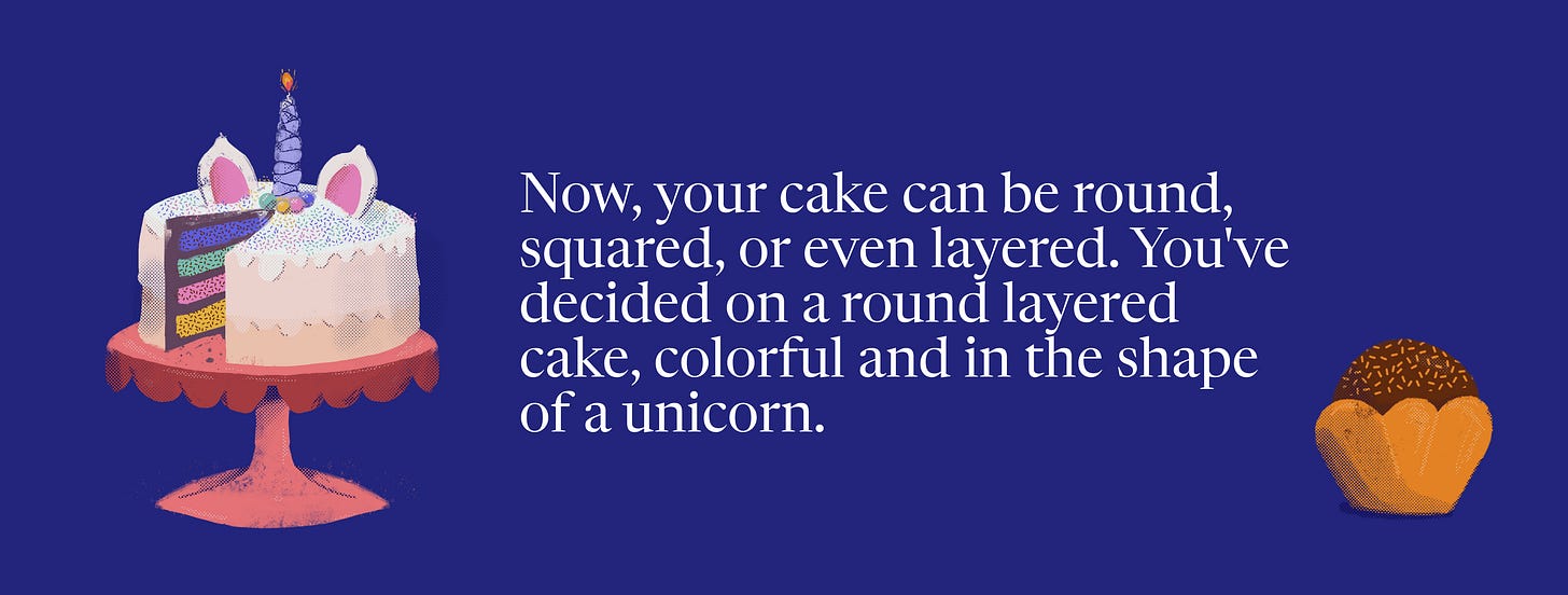 Your challenge gives you a direction and a deadline, but your user defines your decision-making. If our user didn't like sweets, we would not have chosen a dessert for her birthday.